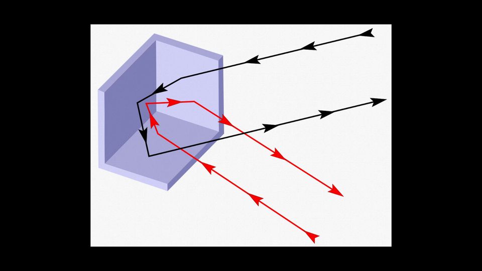 | Light striking mirrors set at right angles always reflects back the way it came. |